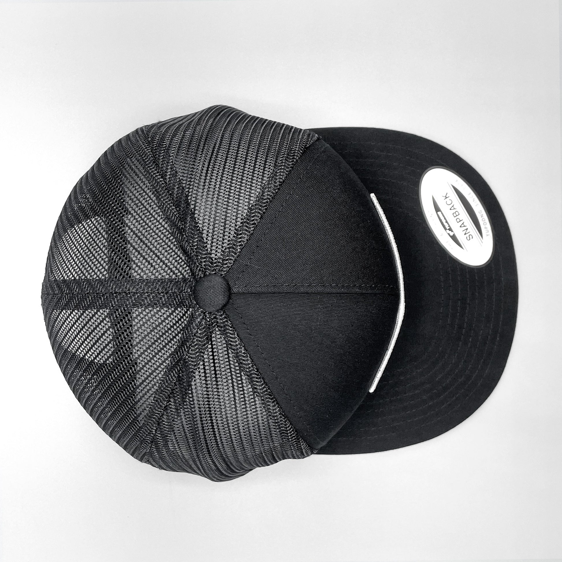- - Classic all black trucker cap with premium, matching mesh panels