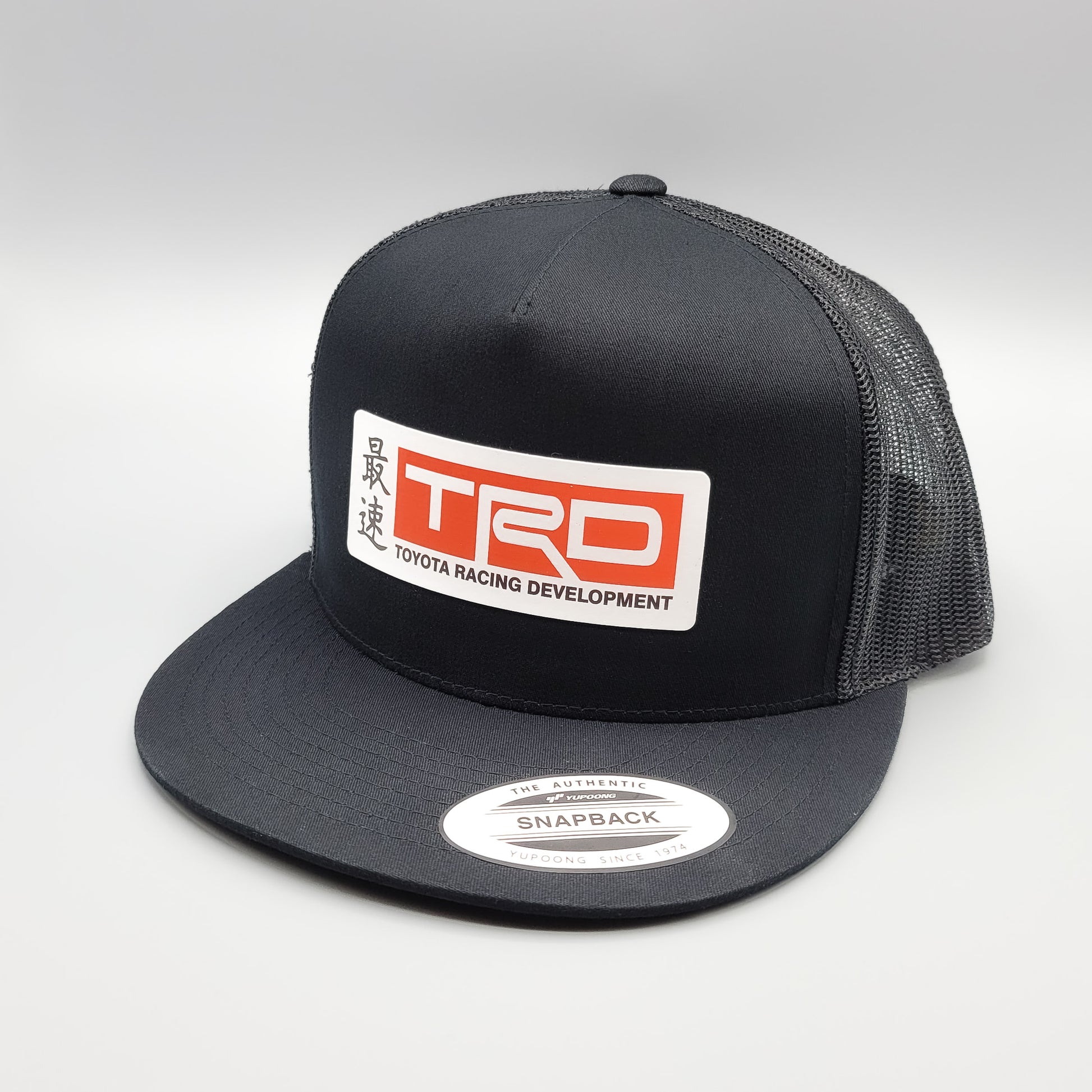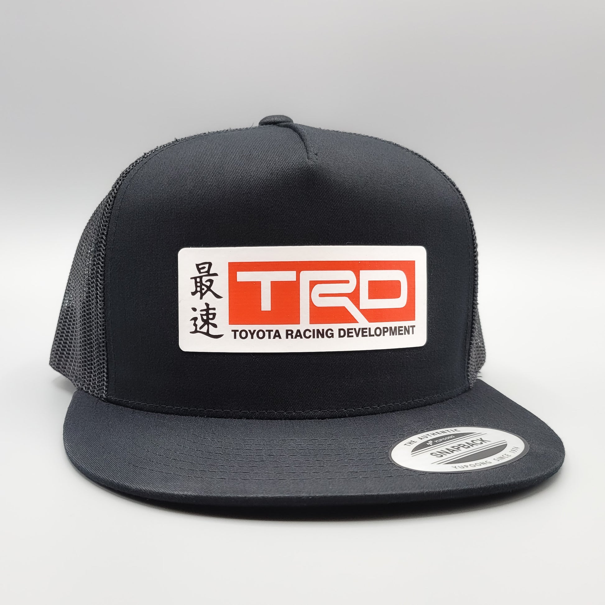 This trucker features a dimensional black, red and white Toyota Racing Development logo with Japanese Kanji script on a new black Yupoong 6006 Classic snapback baseball cap. If you're into all things Toyota TRD and JDM, this is the hat for you.