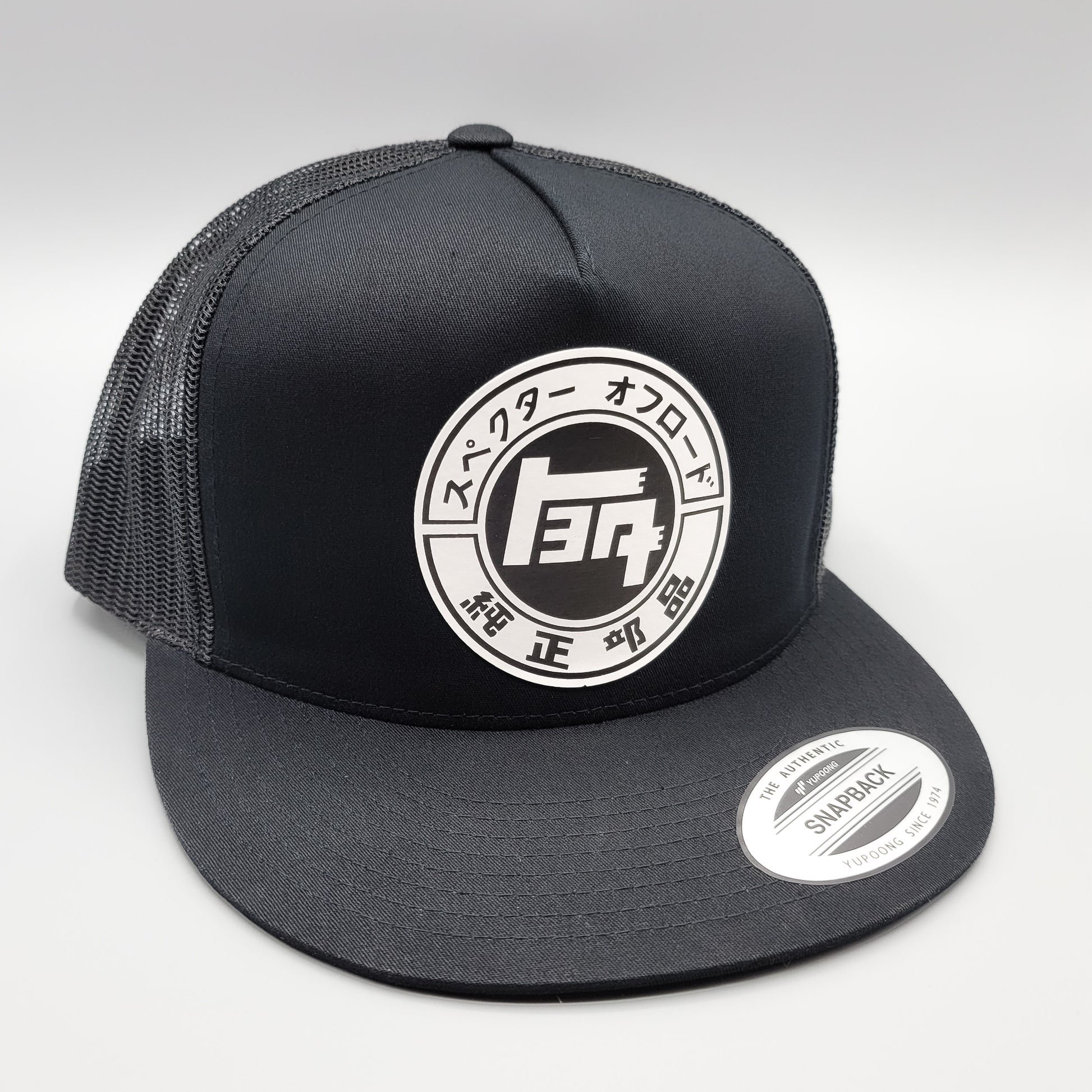 This trucker features a dimensional black and white Japanese Toyota logo on a new black Yupoong 6006 Classic snapback baseball cap. If your favorite cars and trucks are JDM from Japan and you've got a 4Runner, FJ Cruiser, Tundra, Tacoma or Land Cruiser (or even a lifted Sequoia), this is the hat for you!