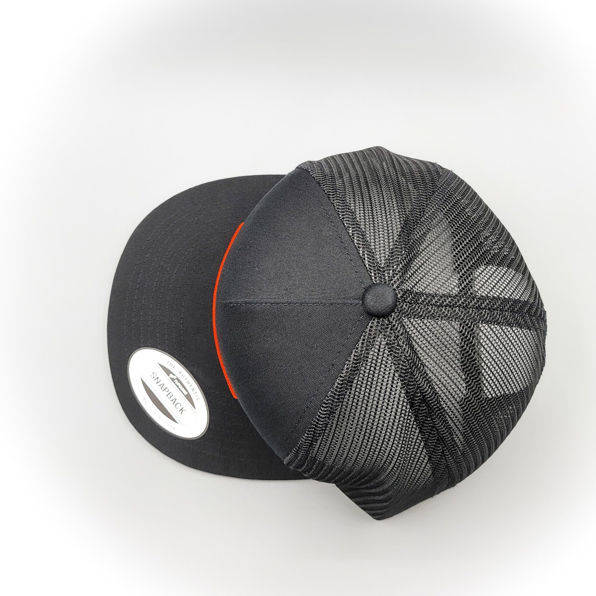 This listing is for a retro WInston Cup Series NASCAR embroidered patch on one of our best selling (and best fitting) trucker hats -- a black Yupoong 6006 mesh snapback trucker hat.